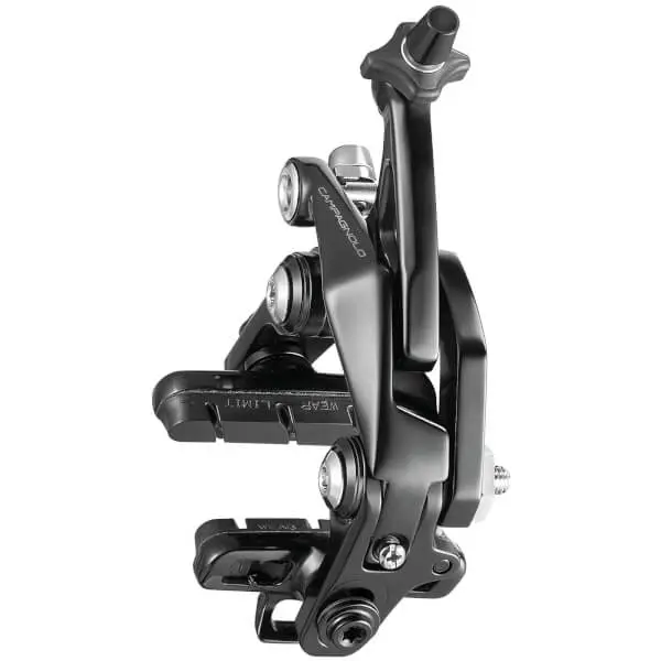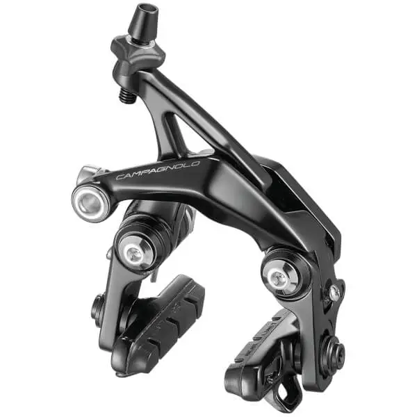 Campagnolo is dedicated towards offering the best performance solution possible no matter what frame a road racing athlete chooses to ride or the tyre he or she chooses to mount. As framebuilders begin to develop frame and fork designs that take advantage of the aerodynamic gains represented by direct mount brakes the Campy Tech Lab set forth to produce a pair of direct mount brakes that boast Campagnolo quality and performance standards. This completely new braking system from Campagnolo allows for a completely symmetric and efficient brake application thanks to its self-balancing design. Campagnolo Direct Mount brakes offer surefooted stopping power thanks to their extremely stiff structure while design elements that take inspiration from the traditional skeleton brake design keep weight to a minimum. In addition to pure performance a great deal of attention was paid to ease of use and adjustment. The direct mount brake is often complex to install and adjust and great strides were made to make this Campagnolo version the most user friendly and simple to adjust of any model available. Campagnolo Brake Shoes Standard: Uses tried and trusted Campagnolo brake shoes, a standard for safety and ease of use. New Aerodynamic Design: Overall form more coherent with aero frames Fast Adjustments: Screws oriented in a direction that allows for the fastest adjustment while guaranteeing easy access to adjustment screws. Fast Assembly: Easy assembly system does not require any additional parts. Weight: 160g
