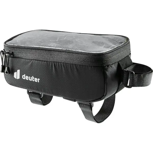 The practical Deuter Smartphone 0.7 Top Tube Bag keeps the most important things at hand and ensures that you always have your smartphone in view during the tour. The protective touch film gives you direct access to your smartphone without having to take it out of the bag. Features: Transparent “Touch” protective film allows direct view and access to the smartphone Main compartment with zipper all around Three short Velcro straps: two to attach the bag to the top tube, one to attach it to the stem Material loops also allow variable mounting on stem/handlebars Integrated rain cover Reflective prints Material: 100D REC PA HT BRIGHT Main material: 100% recycled materials bluesign® certified main material dimensions (L/W/H) 100/200/90mm