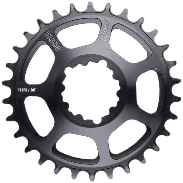 The all new DMR Blade chainring is now 12 speed compatible. The DMR Blade chainring is now 10, 11 and 12 speed compatible. The DMR Blade MTB chainring has a Wide/Narrow tooth design for ultimate chain retention and when combined with a clutch mech, no chain device is needed. This DMR chainring is manufactured from stiff 4mm wide 7075-T6 Aluminium maintaining direct power transfer. Superlight: 30T- 63g | 32T- 67g | 34T- 74g | 36T- 85g. Save 100g on your spider, chainring and chainring bolts setup. DMR Blade chainring is compatible with any cranks using the SRAM DM interface. Wide/Narrow tooth design for maximum chain retention. Specification Stiff 4mm wide 7075-T6 Aluminium. This direct mount chainring is compatible with SRAM DM interface. Fits Shimano/KMC/SRAM 10, 11 and 12 speed chains. 6mm offset for standard rings, 3mm offset for Boost.