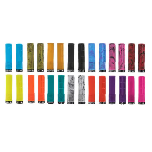 The DMR DeathGrip Flangeless is the second collaboration between DMR bikes and Brendog. ‘I wanted to make the ultimate grip to go on all my bikes: AM to DH. I combined the following features and the DeathGrip is what we ended up with!’ Brendan Fairclough. Tapered Core for Security. Waffle and Knurl for Grip. Mushroom for comfort. We started with an internally tapered single-lock core grip and wrapped Brendan’s design around it in soft Kraton compound for the ultimate mountain bike handlebar grip. These DMR Grips are available in various colours, soft or firm. Tapered Core | No need for outer lock ring Waffle and Knurl for grip Mushroom for comfort Available in Thin (ø29.8) or Thick (ø31.3) Soft durometer of 20A for all colours, apart from Gum which is a harder but longer lasting 25A. 100g per pair