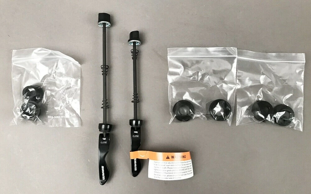 -Axle Compatibility: One of the great benefits of SRAM 900 Hubs is that they will fit almost every standard axle. These wheels come with end caps for the front hub to run the following: Quick Release, 12mm Thru Axle, 15mm Thru Axle, and 20mm Thru axle. The rear hub includes end caps to run Quick Release and 12x 142mm Thru Axle.