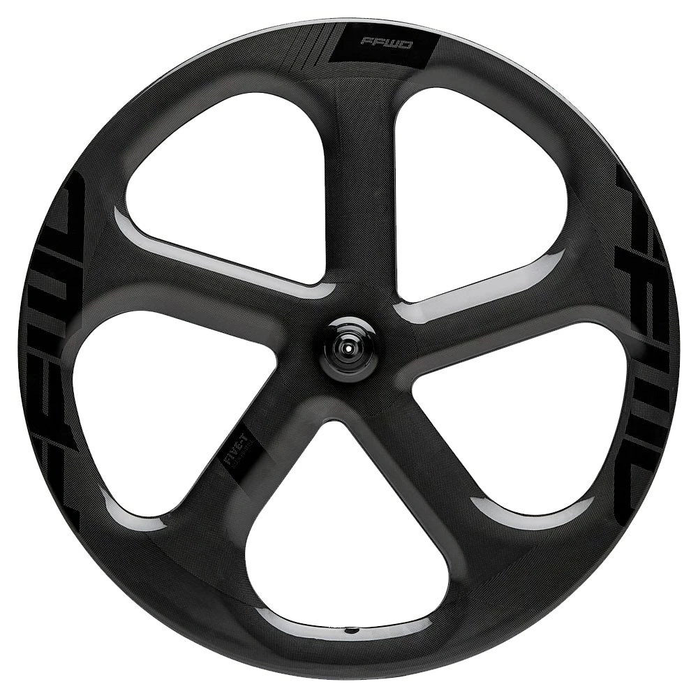 The Five-T front tubular track wheel features a 55mm rim depth and 5 carbon 70mm NACA profile bladed spokes and delivers exceptional aerodynamic performance.