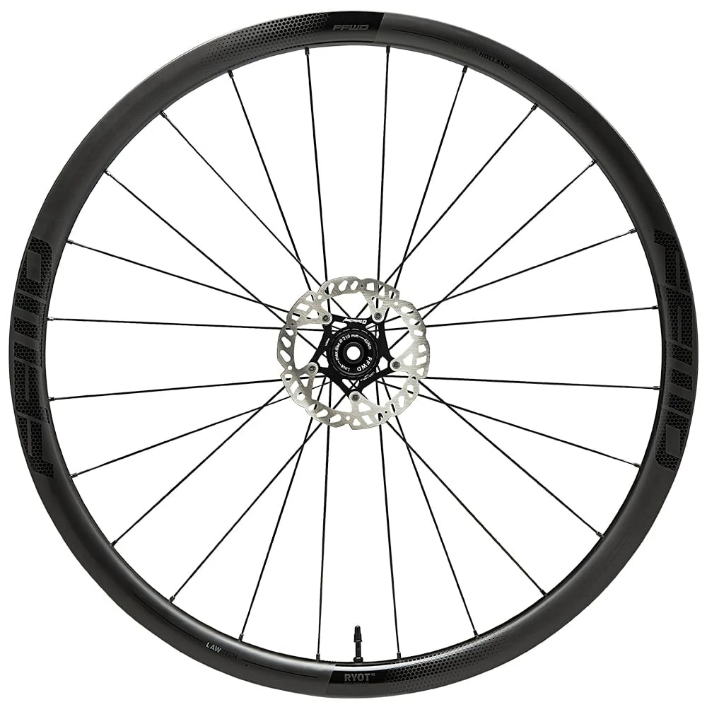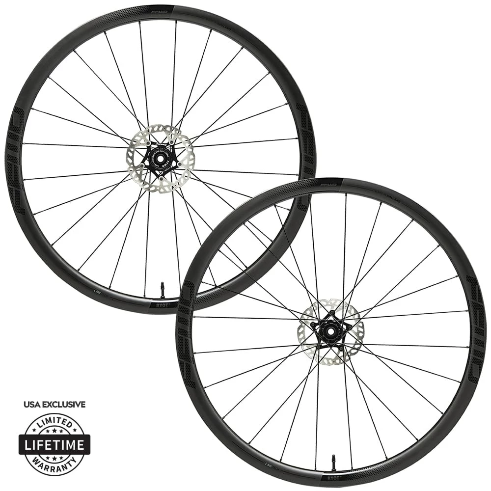 The RYOT33 is built with newly developed FFWD Two/One straight pull centerlock hubs featuring a 36 tooth ratchet system with 10 degrees of engagement, DT Swiss Aerolite and Competition spokes laced in a 2:1 pattern, DT Swiss brass nipples and 12mm thru axle (12/100mm, 12/142mm) as standard.