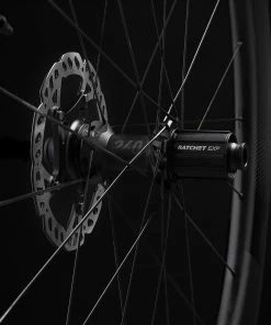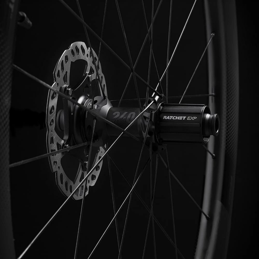The RYOT55 is built with DT Swiss’ newest DT240 EXP straight pull center-lock hubs featuring a 36 tooth star ratchet system offering 10 degrees of engagement for quick and crisp shifting, DT Swiss Aerolite and Competition spokes, DT Swiss brass nipples and 12mm thru axle (12/100mm, 12/142mm) as standard.