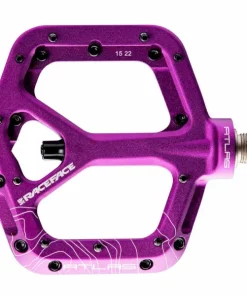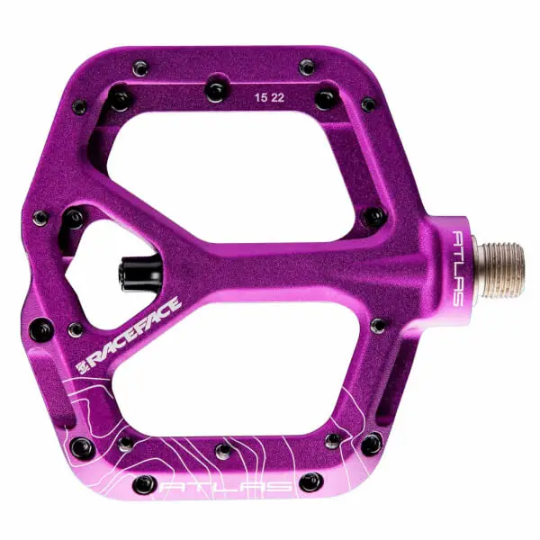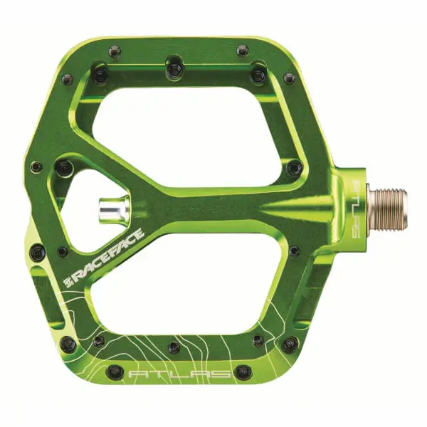 Low And Lean Made from super-strong 6061-T1 aluminum, the double concave body is sleek and light while still giving your foot a nice wide platform to stand on. Round And Round We Go Fully sealed 4-bearing design makes for smooth rolling rotations over an extremely long life. And the ability to rebuild makes it nearly unkillable. Ride Don’t Slide Pins at the front and back of pedal are angled slightly to provide improved traction and foot comfort. Because pedal bites suck. Look Good Ride Good Our top of the line pedals come in 6 different colours so that you can add as much flavour and flair to your ride as you like. Pedal Envy More than just a trusty platform for stomping landings and railing around berms, the Atlas Pedal has long been Race Face’s top contender. It’s strong, thin, concave, lightweight, rebuildable, and ideally suited for getting wild in the woods.