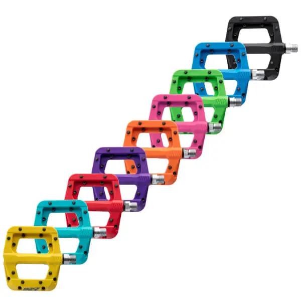 Here For The Party A party’s just not a party until Chester shows up. This burly nylon composite pedal is big on features, small on price, and fully ready to tear up some trail. A concave body, replaceable traction pins, and a cro-mo sealed axle are all representing.