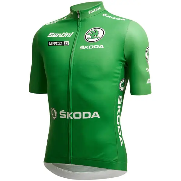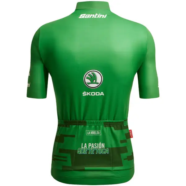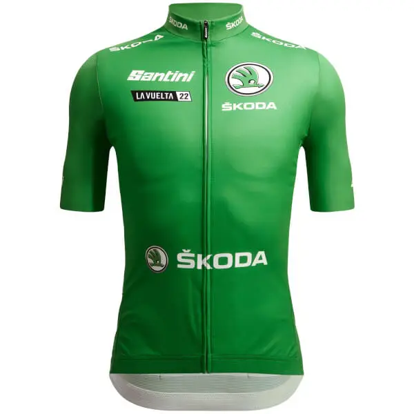 Official best sprinter leader jersey of the La Vuelta 2022. Short sleeve jersey, Kevo model with full covered zip. Classic fit with raw cut sleeves and mesh side panels.