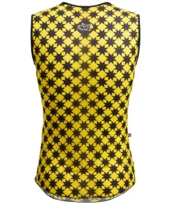 Sleeveless baselayer with a special design dedicated to stage five of the 2022 Tour from Lille to Arenberg Porte du Hainaut. The unique design is based around the use of the cobbled sector through the Arenberg forest, included in this years stage. The geometric ‘cobble-stone’ pattern used in the design is created using a star motif, a nod to Paris-Roubaix, the while the dark tones used in the design reference the areas coal mining heritage. Created to guarantee absolute comfort thanks to its fit, elasticity and moisture-wicking properties. The specially elongated cut provides the upmost protection without causing and discomfort when worn underneath your jersey. The perfect complement to the Arenberg Official cycling kit.
