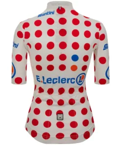 Official Pro Team Tour de France Femme avec Zwift King of the Mountain jersey. This is the same jersey the Best Climber of the Tour de France Femme avec Zwift wears. Made with eco-friendly materials and created with a special attention to details, this aero-light jersey is perfect for summer training rides and races offering performance fit and superior comfort, or just as a collector piece in your cycling legendary jerseys’ collection. Eco Technology Made with recycled fabrics from PET and waste yarns. This jersey is one of the actions that we at Santini do every day for a more sustainable future. Race Fit Sleek fit with raw cut sleeves and new Arc de Triomphe shaped silicon gripper for aero performance. This is the same jersey that the King of the Mountain of the Tour de France Femme avec Zwift wears. It’s All In The Details Invisible zipper on the front. Triple rear pocket to take what’s essential with you. Elastic with custom polka dots silicon gripper at the waist to keep the jersey always in place and silicon patch on the bottom left of the jersey explaining the inspiration behind all the Tour de France leader jerseys. “Le maillot est le Trophee” because at Le Tour de France, the leader jersey truly is the trophy.