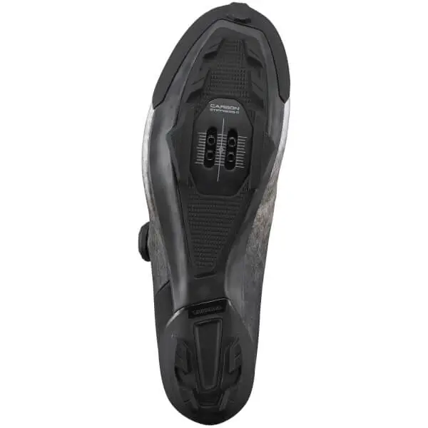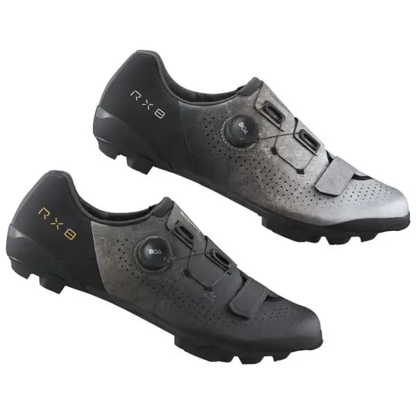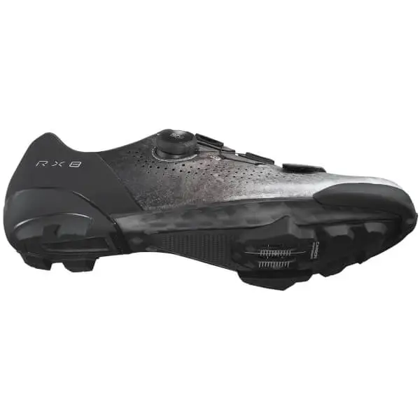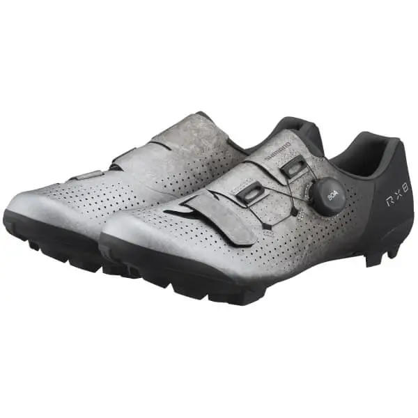 Shimano’s RX801 Gravel Shoes are well suited to a range of off-road disciplines, so whether cyclocross, gravel racing or fast off-road adventures are your thing, these are an excellent, high-performance option. An inkjet printing finish gives the shoes a unique, smart aesthetic. The upper is constructed from a microfibre synthetic leather and mesh to maximise both durability and breathability. An RX800 lightweight carbon sole makes the shoes stiff and highly efficient, effectively transferring all your power through the pedals. Closure is via a single BOA® Li2 dial and toe strap so there’s plenty of room for micro-adjustment and quick mid-ride tweaks. When shouldering the bike, climbing over stiles or simply going into a cafe after a ride, the TPU lugs bring confidence-inspiring grip. Features Surround wrap, microfibre synthetic leather and mesh upper for durability and breathability BOA® Li2 dial and toe strap High-density cup insole with adaptable arch pad RX800 super-light carbon sole Lightweight TPU walking pads Lightweight, abrasion-resistant TPU lugs offer balanced pedalling performance and off-the-bike capability Pedal compatibility: Two-bolt SPD Stiffness rating: 10 Manufacturer claimed weight: 255 grams (per shoe, size 42)