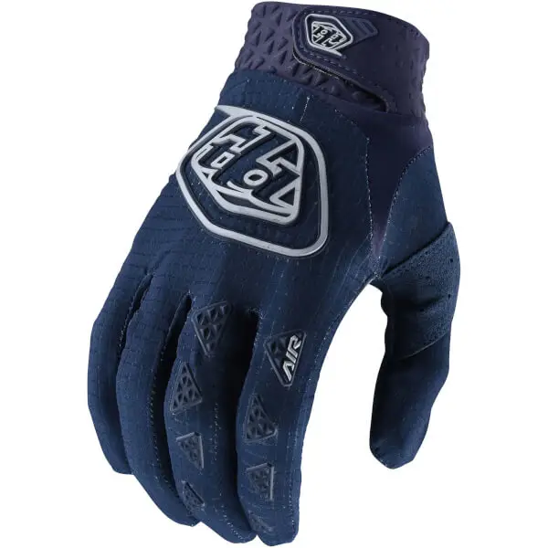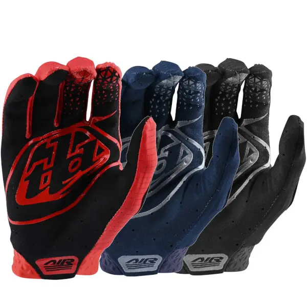 The Troy Lee Designs Air Gloves feature a compression-moulded cuff and a single layer palm with laser perforated holes for breathability. Micro-mesh is used all over for added ventilation. Silicon print on finger offers a grippy spot for brake lever grip. Key Features Compression cuff Micro-mesh for all-over ventilation Silicone printed finger tips for lever grip Single-layer palm with mapped perforation Thermal Plastic Rubber protection on fingers