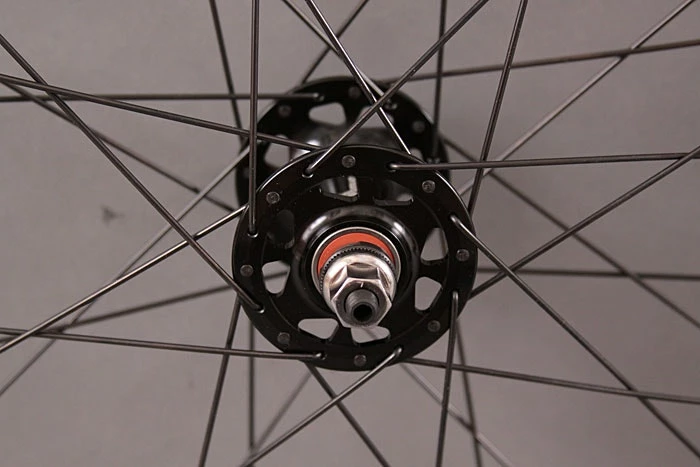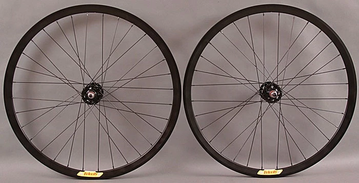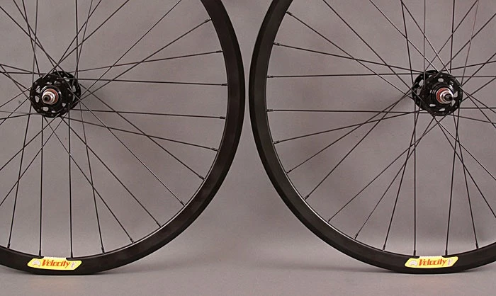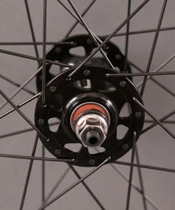 New Pair of Velocity 32 hole deep v 700C black clincher rims -black DT spokes – Formula Origin8 branded sealed bearing high flange hubs.