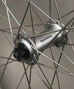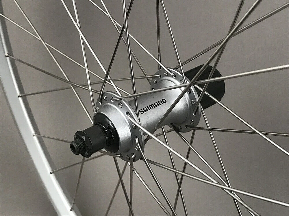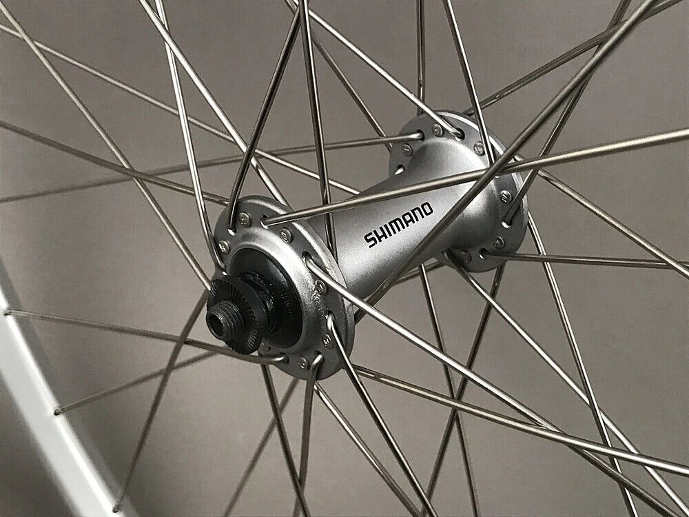 Durable Velocity Dyad Silver rims, Shimano Acera T-3000 model 8 9 10 Speed Hubs. You can also run Shimano M Series 11 Speed MTB Cassettes!
